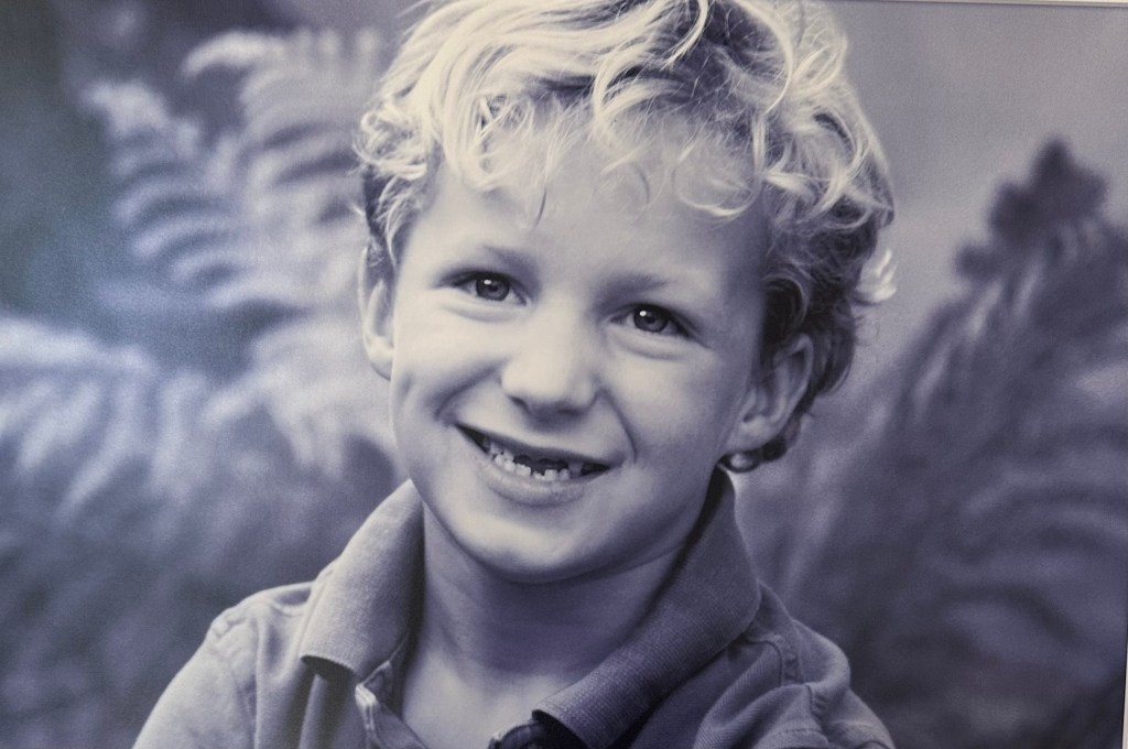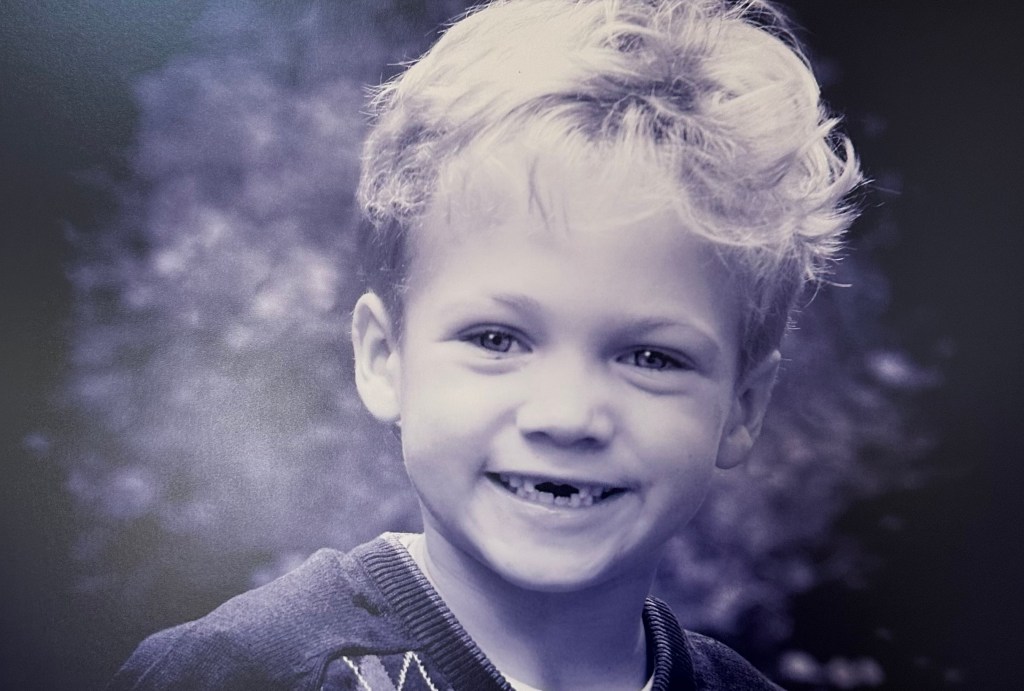 Grandkids toothless photos from staircase
