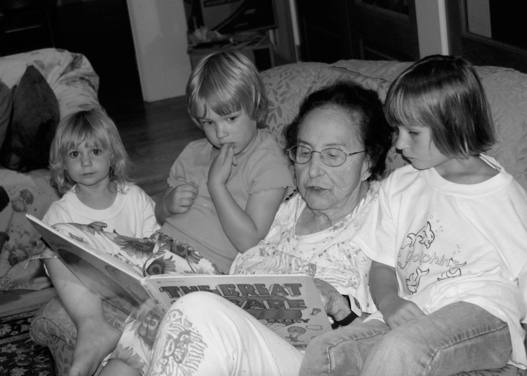 Great Grandma Tembrock reading to grandkids 2005