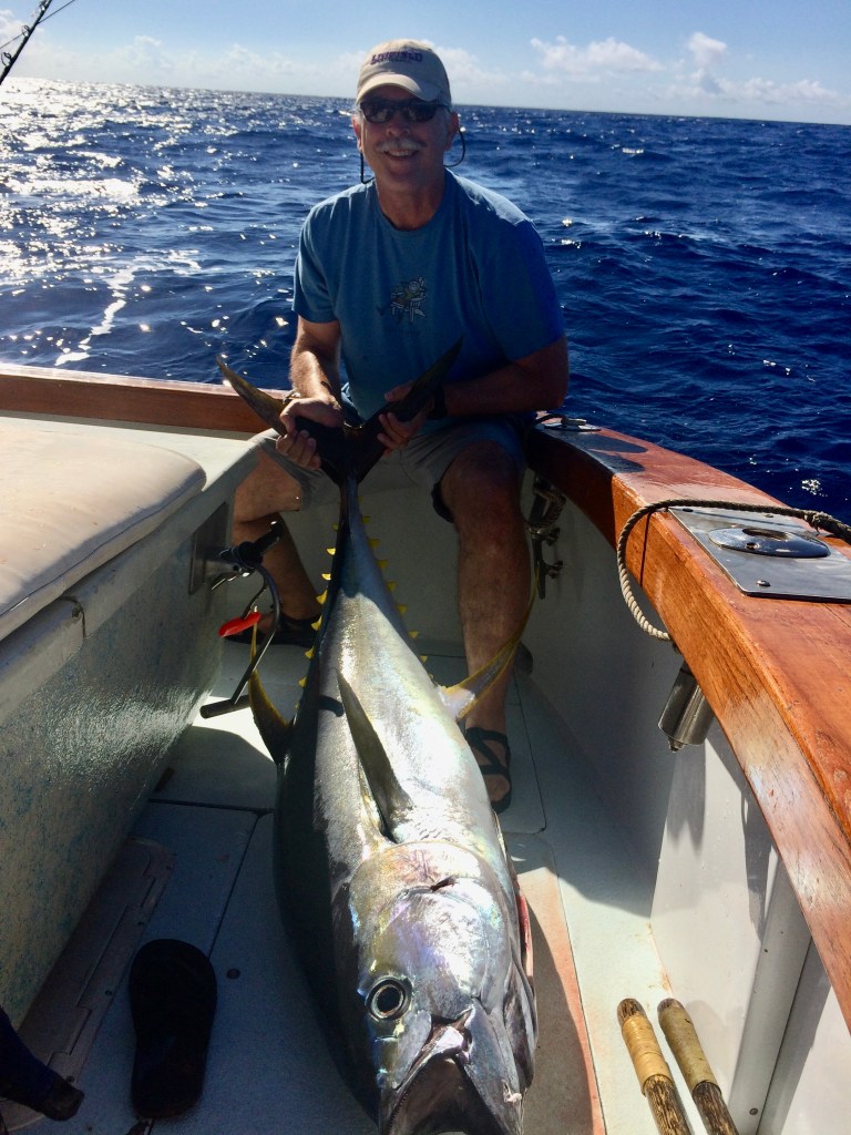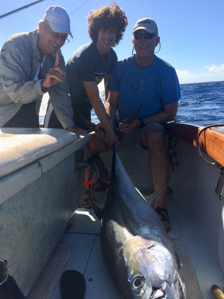 225 pound yellowfin tuna with Dave and Josiah Lorenz on the island of Kauai