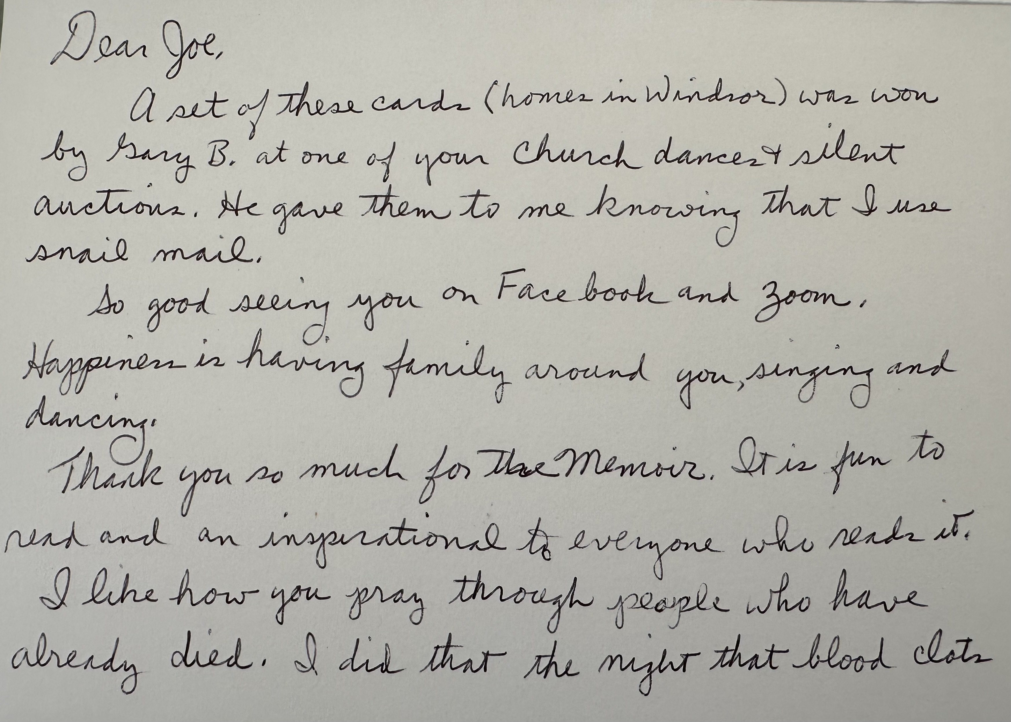 When I started my memoir about three years ago, my vision was a simple document that contained my beliefs with some anecdotes and a few pictures and have it maintained for future generations. However, thanks to an awesome team, we developed a web site that contains photos, documents, DVDs and audios. I decided to share with a broad group of friends and made bound copies and our team distributed the documents. Many replied. See a few of the responses below. I am a bit overwhelmed by the positive responses.